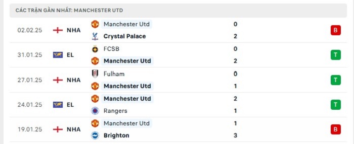 Phong độ gần đây Manchester United vs Leicester City