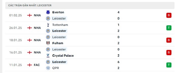• Phong độ Leicester City