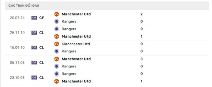 Quá khứ vẫn đang gần như hoàn toàn đứng về phía Manchester United trong những lần gặp nhau của hai đội trước đây, cụ thể là 5 lần gặp nhau gần nhất đội bóng chủ sân Old Trafford có cho mình tổng cộng 4 trận thắng kèo châu Âu và chỉ hoà 1 trước Rangers cho thấy thực lực của họ, xét về mặt phong độ mà nói dù Manchester United không tốt hơn nhiều so với Rangers nhưng ở sân chơi này ít nhiều họ vẫn đang có được tinh thần với thành tích bất bại của mình, chính vì vậy mà có thể kỳ vào một chiến thắng cho Manchester United ở trận sắp tới.