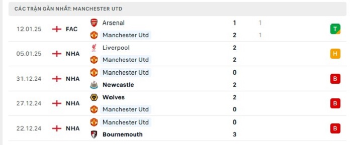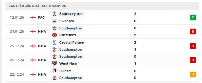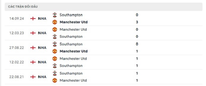 Bảng  bóng đá trận đấu Manchester United vs Southampton