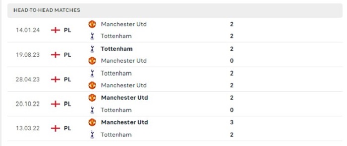 Phong độ gần đây Manchester United vs Tottenham