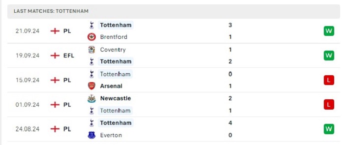 - Phong độ Tottenham