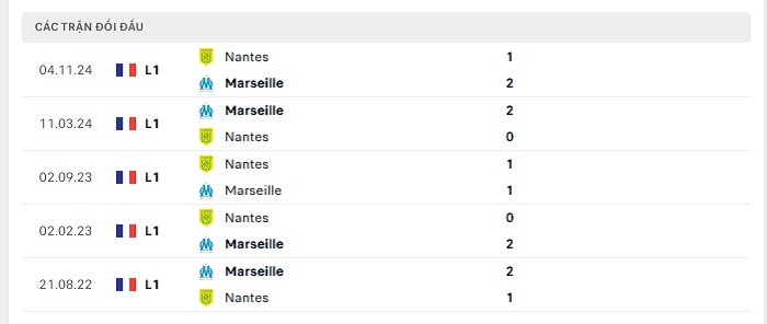 Bảng  bóng đá trận đấu Marseille vs Nantes