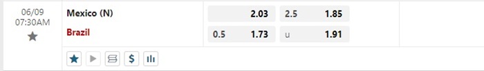 Bảng tỷ lệ kèo bóng đá trận đấu Mexico vs Brazil
