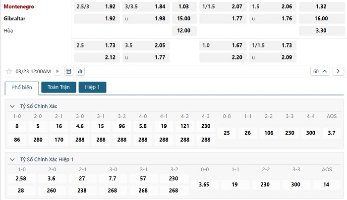 Soi kèo tỷ số Montenegro vs Gibraltar