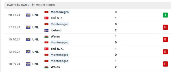 Phong độ gần đây Montenegro vs Gibraltar
