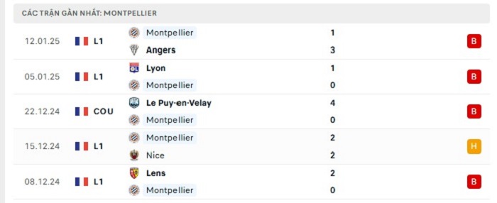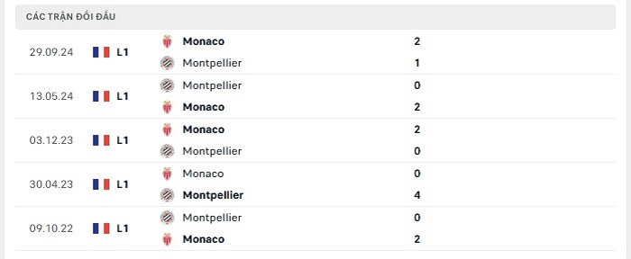 Bảng bóng đá trận đấu Montpellier vs Monaco
