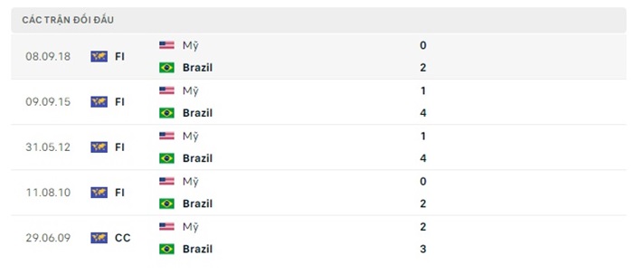 Quá khứ cũng đã thấy được Mỹ chính là con mồi yêu thích của Brazil trong quá khứ. Cả 7 lần gặp nhau gần đây của hai đội Brazil đều là đội thắng kèo châu Âu đã cho thấy được sức mạnh tuyệt đối của họ trước đối thủ này. Hơn nữa về mặt phong độ mà nói Brazil cũng có được sự ổn định và đội hình chất lượng hơn nhiều so với đối thủ, vì vậy mà một thắng lợi theo kèo châu Âu với Brazil là nhiệm vụ không phải ngoài tầm tay.
