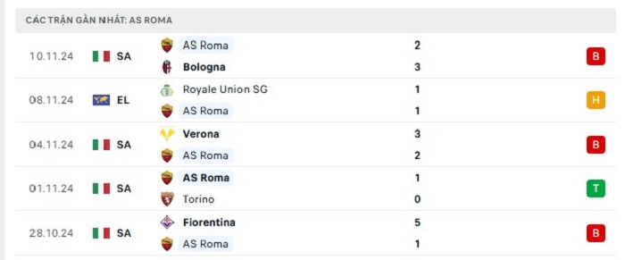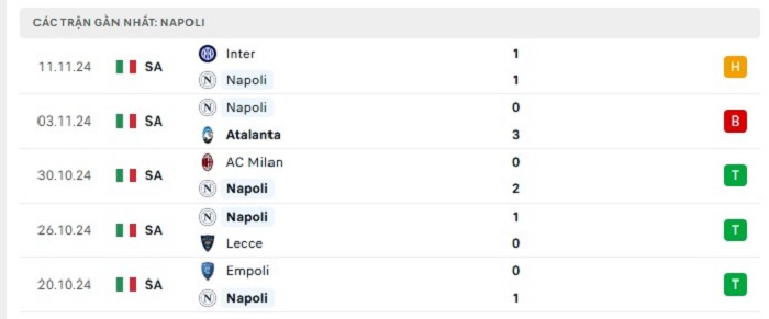 Bảng  bóng đá trận đấu Napoli vs AS Roma