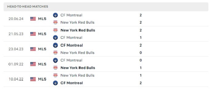 Lịch sử đối đầu của New York Red Bulls vs CF Montreal