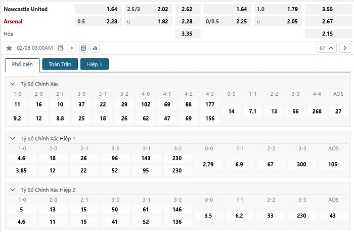 - Dự đoán tỉ số trận đấuNewcastle vs Arsenal