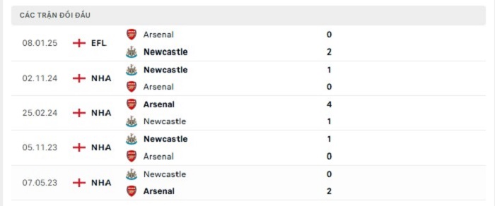 Lịch sử đối đầu của Newcastle vs Arsenal