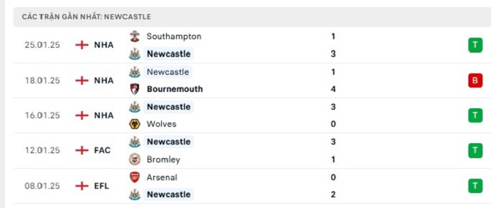 - Phong độ Newcastle