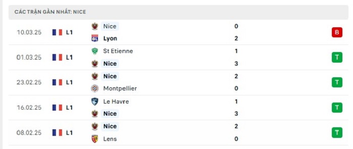 Bảng bóng đá trận đấu Nice vs Auxerre