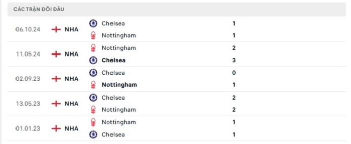 Lịch sử đối đầu của Nottingham vs Chelsea