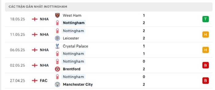 Phong độ gần đây Nottingham vs Chelsea