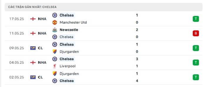 • Phong độ Chelsea