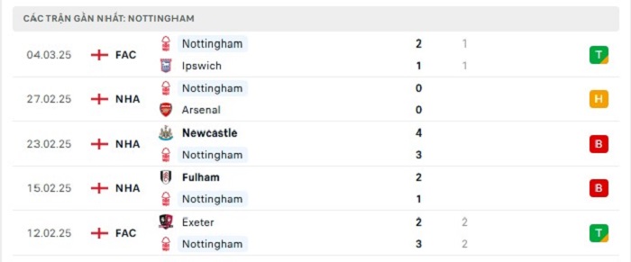 Phong độ gần đây Nottingham vs Manchester City
