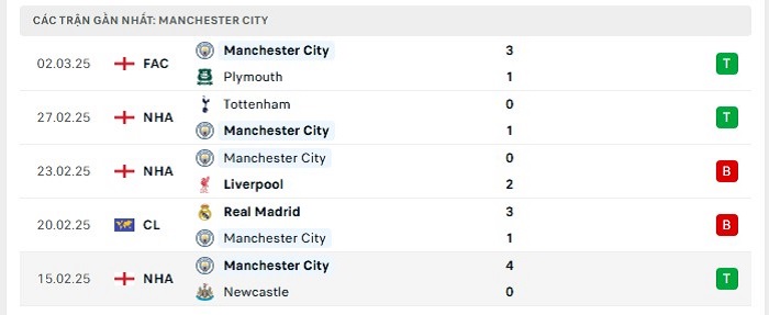 - Phong độ Manchester City