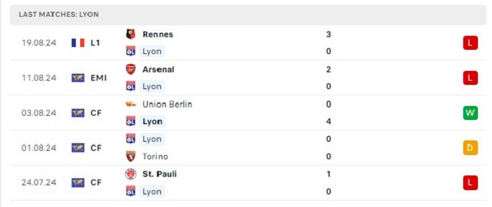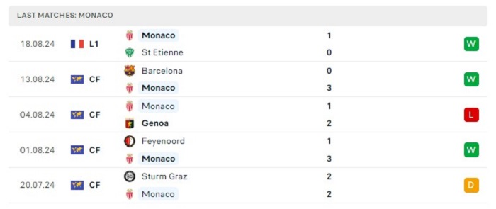 Phong độ gần đây Olympique Lyonnais vs AS Monaco