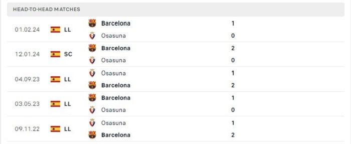Lịch sử đối đầu của Osasuna vs Barcelona