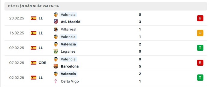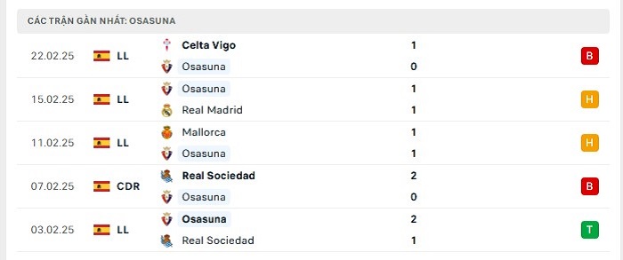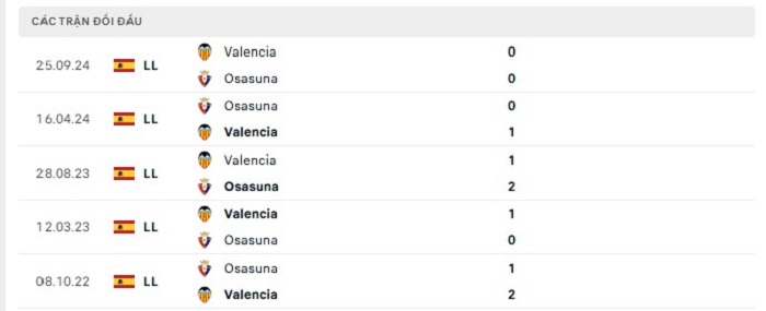 Bảng  bóng đá trận đấu Osasuna vs Valencia