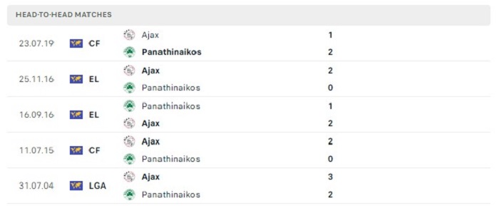 Panathinaikos mặc dù có được những lợi thế về mặt sân nhà nhưng họ cũng không được đánh giá quá cao so với Ajax Amsterdam thời điểm hiện tại. Thực tế có thể thấy được trong những lần gặp nhau trước đây Panathinaikos cũng có những khó khăn rất nhiều, cụ thể chính là 5 trận gặp nhau gần nhất ưu thế đang thuộc về Ajax Amsterdam khi họ có tới 4 trận thắng kèo châu Âu trước Panathinaikos trong khi mới chỉ để thua 1 trận đấu. Vì vậy mà khả năng Ajax Amsterdam có được một thắng lợi là điều đang nằm trong khả năng của họ.