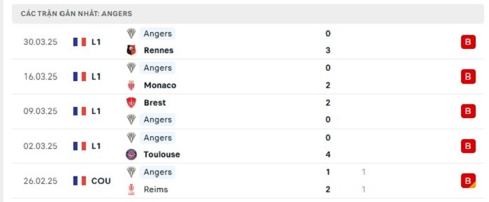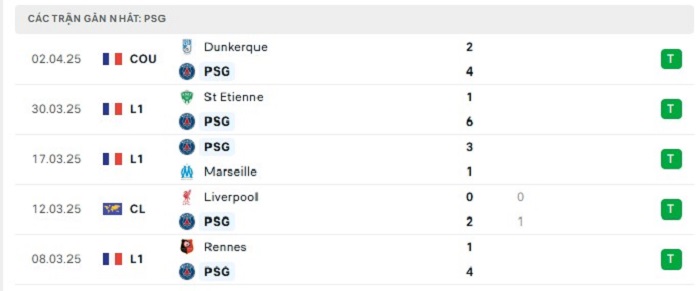 Phong độ gần đây Paris Saint-Germain vs Angers