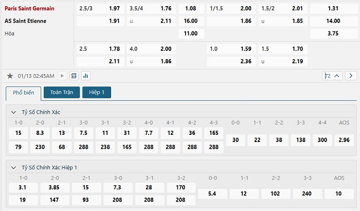 Soi kèo châu Á, kèo chấp Paris Saint Germain vs Saint Etienne