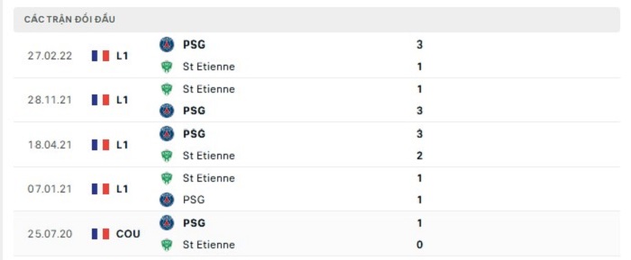 Trong quá khứ những trận gặp nhau giữa Paris Saint Germain và Saint Etienne vốn cũng thường xuyên xuất hiện tỷ số cao ghi được khi 3 trận liên tiếp gần đây của hai đội đều có được từ 4 bàn trở lên. Hàng công vẫn đang là điểm mạnh của Paris Saint Germain ở giải đấu số 1 nước Pháp thì với Saint Etienne họ lại thể hiện sự yếu kém của mình nơi hàng thủ với số bàn thua phải nhận tương đối nhiều, do vậy mà có thể kỳ vọng tới một trận đấu có tỷ số cao ghi được cho cả hai đội ở trận đấu sắp tới.