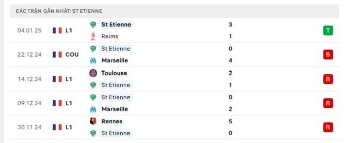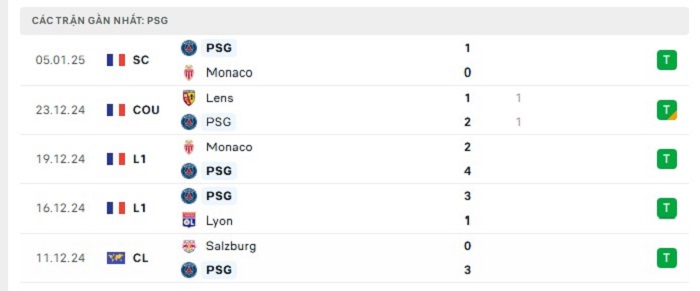 Phong độ gần đây Paris Saint Germain vs Saint Etienne