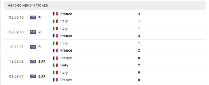 Thống kê có thể thấy được trong 7 lần hai đội gặp nhau gần đây kể từ năm 2006 thì Pháp có tới 4 trận thắng kèo châu Âu trong khi chỉ hoà 2 và thua 1 trước Italia, trong đó 3 chiến thắng liên tiếp đã được họ tạo nên trước Italia cũng đã nhận thấy được thực lực của tuyển Pháp có những mặt nhỉnh hơn nhiều trước Italia. Chính bởi vậy mà nếu tiếp tục thể hiện được sức mạnh vốn có và ưu điểm về mặt sân nhà thì khả năng thắng kèo châu Âu của Pháp vẫn được sự kỳ vọng nhiều hơn.