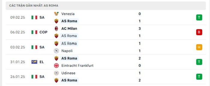 - Phong độ AS Roma