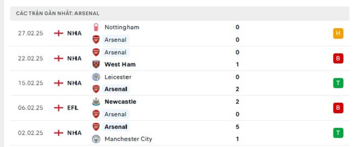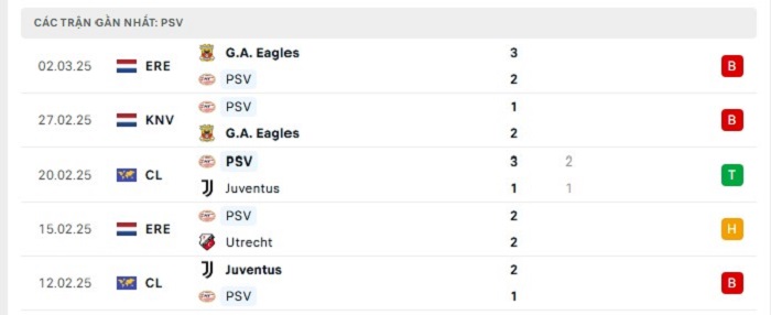 Phong độ gần đây PSV Eindhoven vs Arsenal