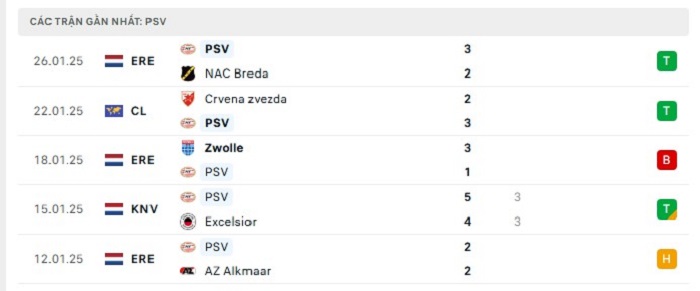 • Phong độ PSV Eindhoven