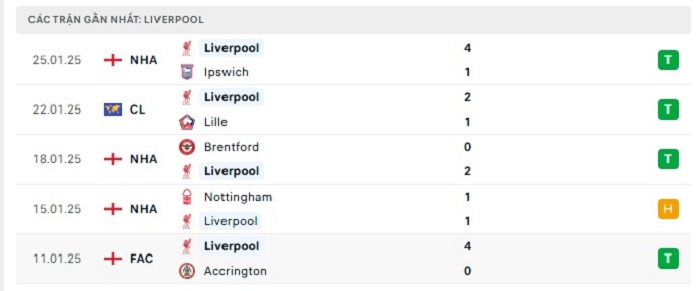 • Phong độ Liverpool