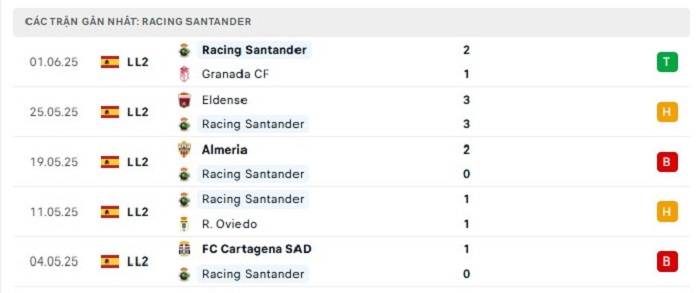Lịch sử đối đầu của Racing Santander vs Mirandes
