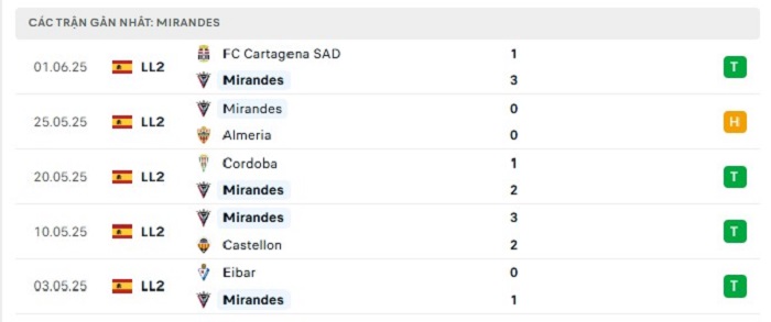 - Racing Santander 1-0 Mirandes (Full-Time)