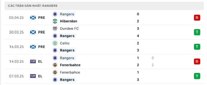- Phong độ Rangers