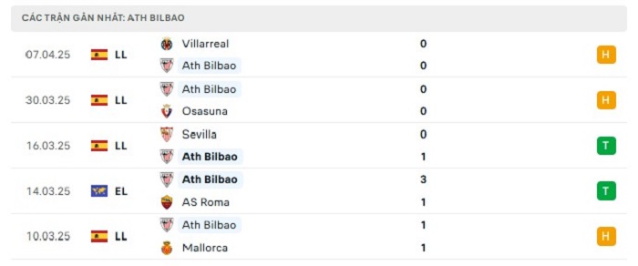 - Phong độ Athletic Bilbao