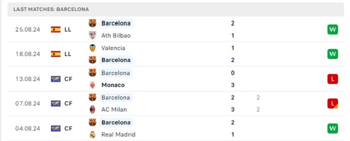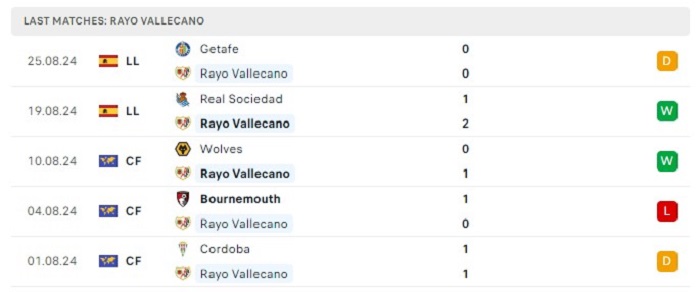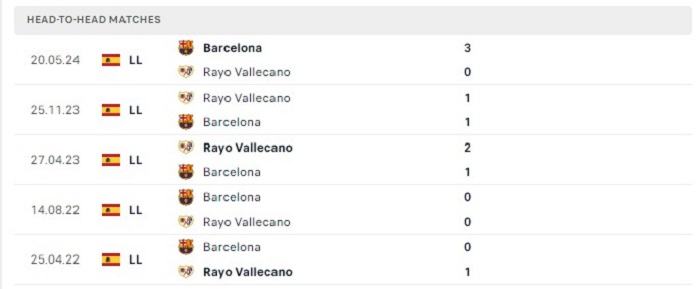 Phong độ gần đây Rayo Vallecano vs Barcelona