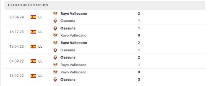 Lịch sử đối đầu của Rayo Vallecano vs Osasuna