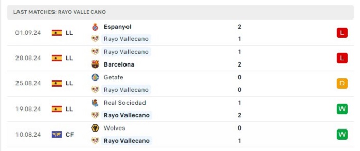 • Phong độ Rayo Vallecano