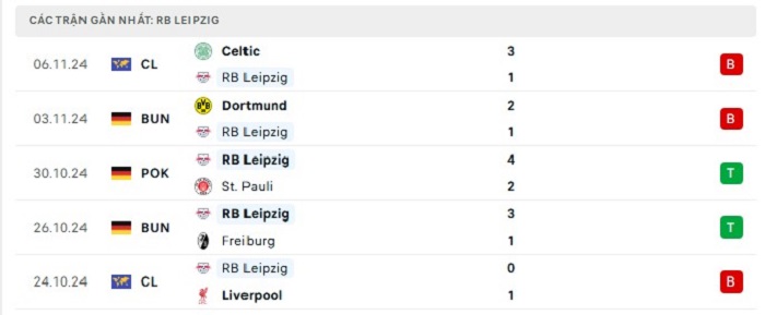 - Phong độ RB Leipzig