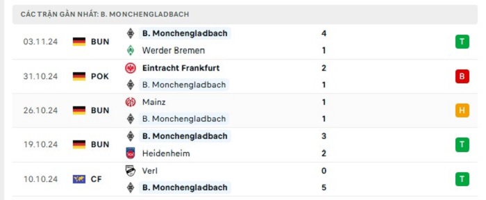 - Phong độ Borussia Monchengladbach