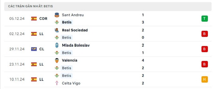 • Phong độ Real Betis