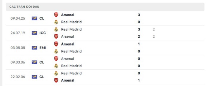 Lịch sử đối đầu của Real Madrid vs Arsenal