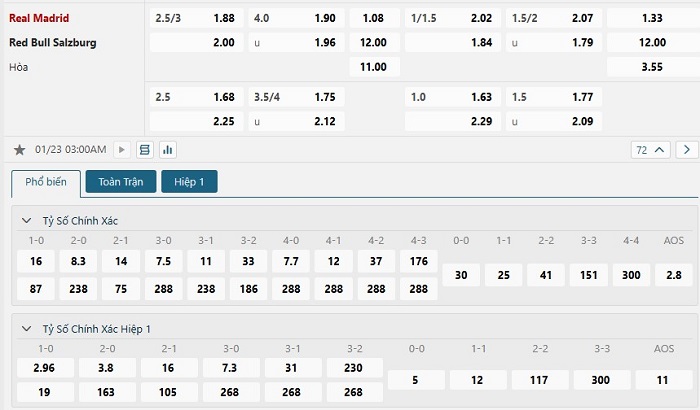 Soi kèo châu Á, kèo chấp Real Madrid vs Red Bull Salzburg