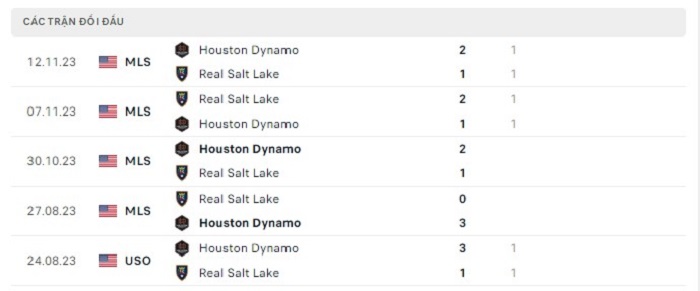 Lịch sử đối đầu của Real Salt Lake vs Houston Dynamo
