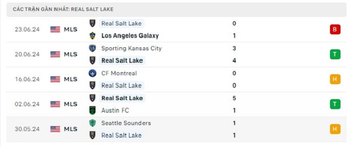 • Phong độ Real Salt Lake
